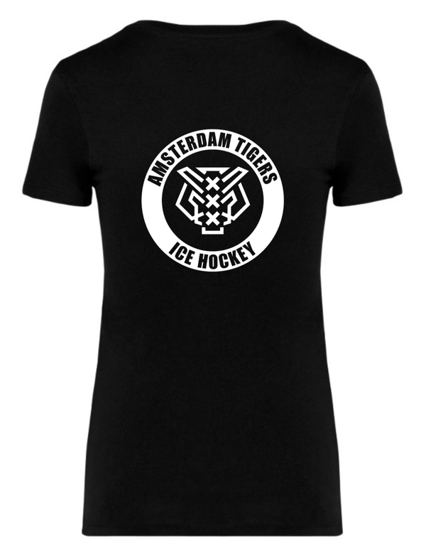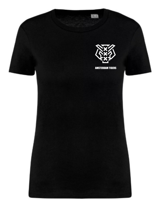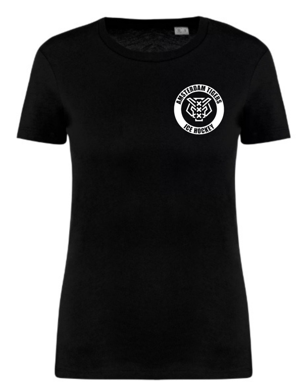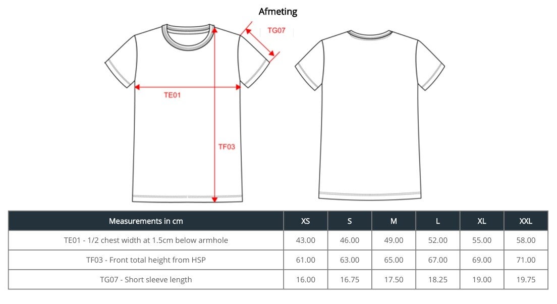 Ecologisch getailleerd 100% katoenen t-shirt inclusief borstlogo (8 cm) en ruglogo (22 cm).