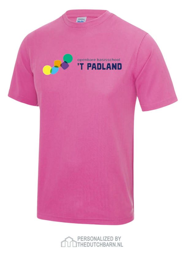 Sportshirt 100% polyester voorzien van groot logo 26-28 cm breed, op voorkant.