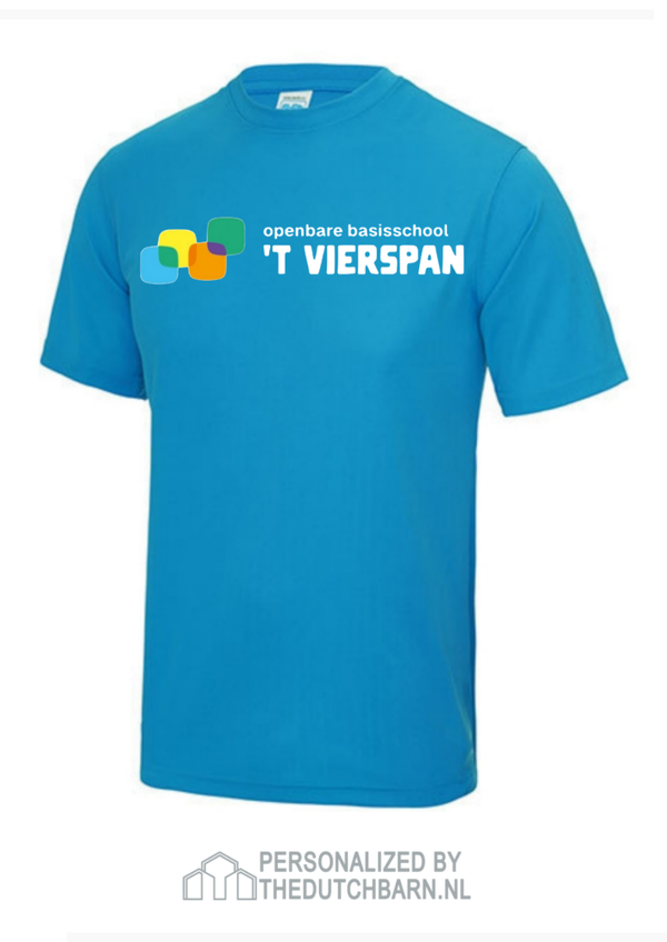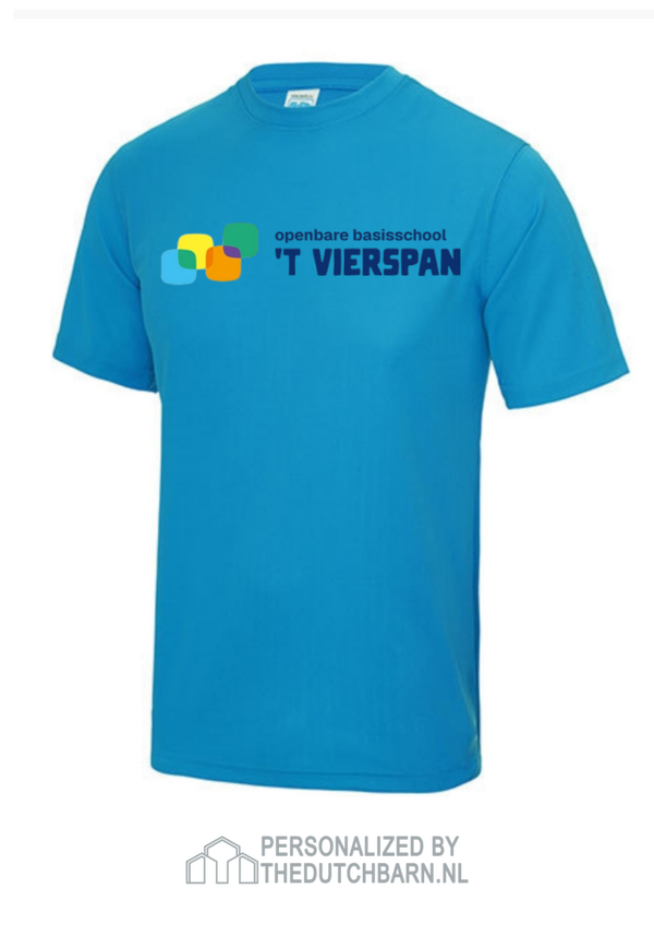 Sportshirt 100% polyester voorzien van groot logo 22-24 cm breed, op voor - of achterkant.